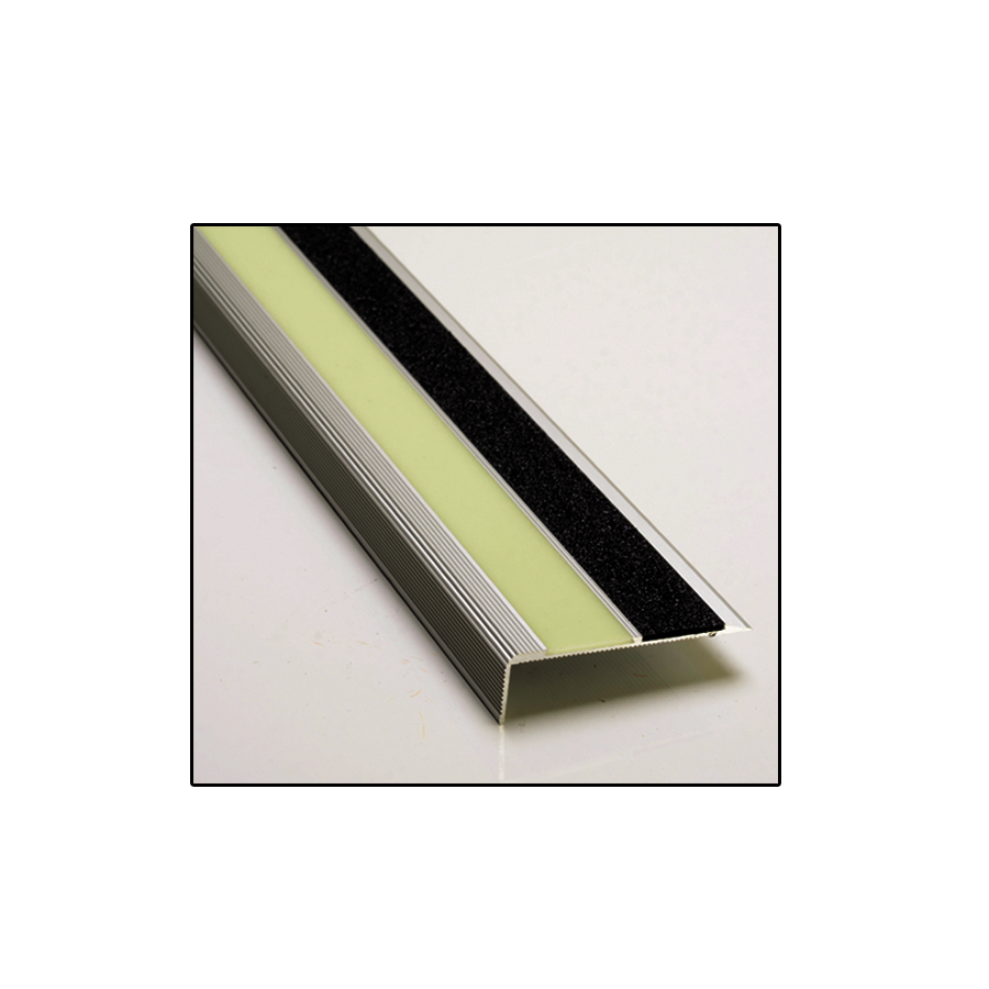 Active Safety’s 200 Series Photoluminescent Stair Tread Marker is a durable, high quality “bullnose” shaped aluminum extrusion with an integral photoluminescent stripe that installs directly onto the leading edge nose of new and existing stairs. Several options ensure compatibility with various project designs including a non-skid strip. Automatic operation requires 1 footcandle of artificial illumination during normal conditions. Long life and near zero maintenance ensure continuous safe operation.